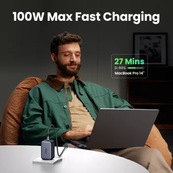 100W GaN USB-C Fast Charger with PD & Quick Charge Technology