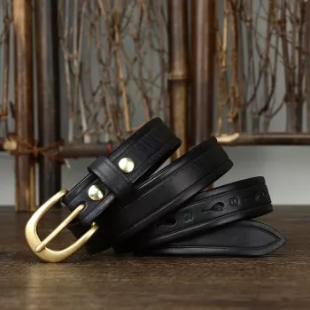 2.4CM Cowhide Leather Belt with Copper Buckle for Women