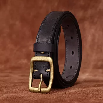 2.4CM Genuine Leather Thin Belt with Copper Buckle for Women
