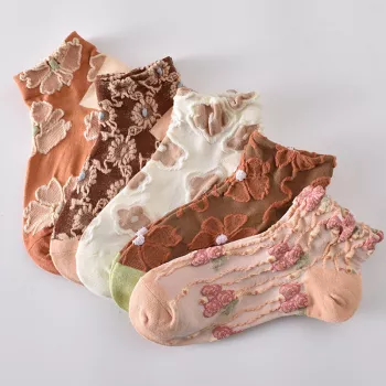 5 Pairs Retro Floral Low-Cut Socks – Soft Cotton Blend Summer Set