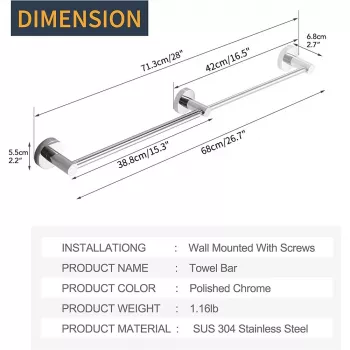 Adjustable Stainless Steel Towel Bar - Retractable Wall-Mounted Holder