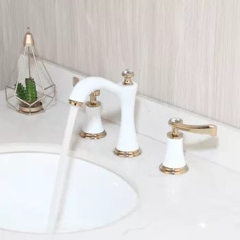 Black & Gold 3-Piece Bathroom Faucet Set - Deck Mount, Dual Handle Mixer Tap