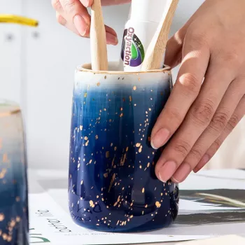 Elegant Blue Starry Sky Ceramic Bathroom Set