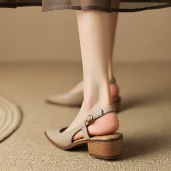 Elegant Leather Slingback Office Pumps for Women – 4cm Mid Heel Sandals