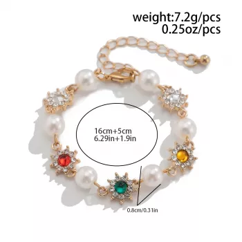 Elegant Pearl & Rhinestone Flower Charm Bracelet – Bridal & Gothic Glam
