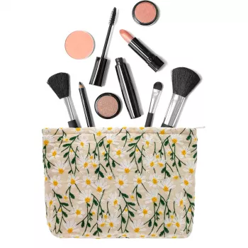 Embroidered Daisy Travel Cosmetic Bag – Large Capacity Makeup Organizer