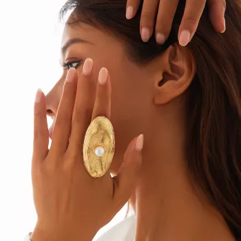 Exaggerated Elliptical Spiral Pattern Ring with Tiny Imitation Pearls
