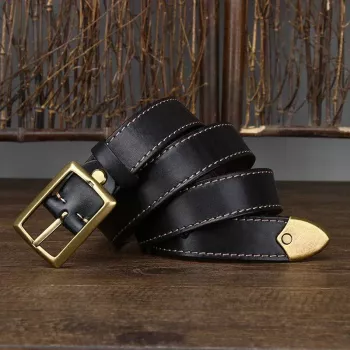 Genuine Leather Belt with Brass Buckle – 1.3 Inch Wide