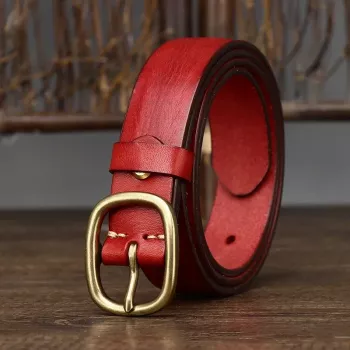 Genuine Leather Cowhide Belt with Copper Buckle for Women