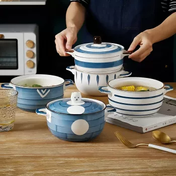 Japanese Ceramic Noodle Bowl with Lid – 6 Inch Porcelain Soup & Salad Pot