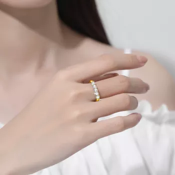 Luxury 18K Gold Moissanite Ring for Women - 5 Stone Solid 925 Silver Engagement Band