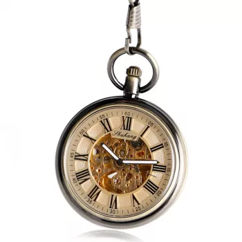 Luxury Antique Style Auto Mechanical Pocket Watch with Fob Chain