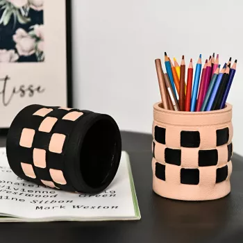Luxury Checkerboard Pen Holder – Multifunctional Desk Organizer for Home & Office