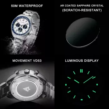 Luxury Men's Chronograph Quartz Watch with Sapphire Glass & 5ATM Water Resistance