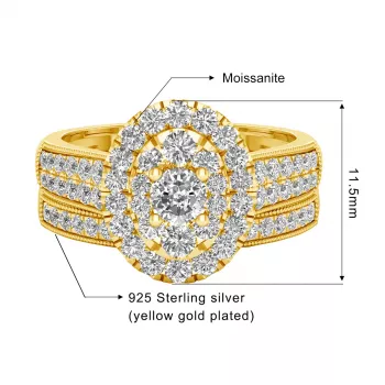 Luxury Moissanite Engagement Ring Set - 2 Piece Solid Sterling Silver 925 Wedding Jewelry for Women