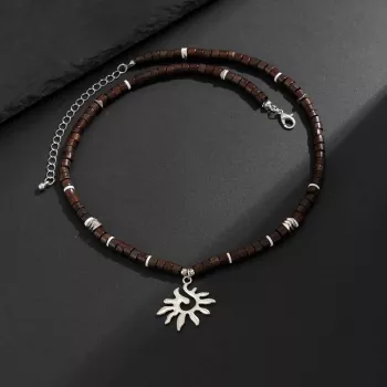 Minimalist Coconut Husk Bead Necklace with Sunflower Pendant for Men