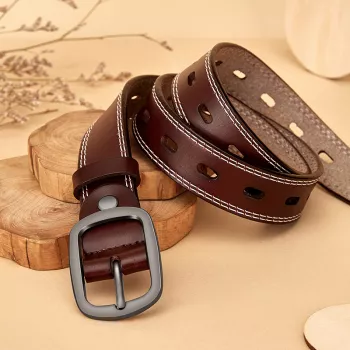 Narrow Leather Belt for Women - Brown Buckle Stylish Waistband