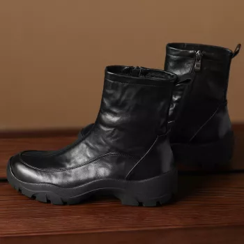 Plus Size Sheepskin Platform Ankle Boots with Side Zipper