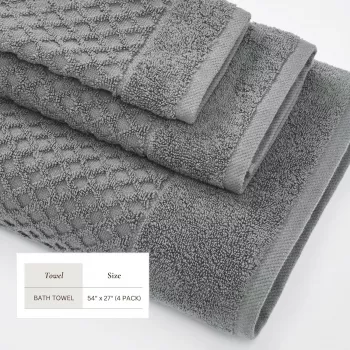 Plush 100% Cotton Bath Towels Set of 4 - Diamond Design, Super Soft, 27x54 Inches