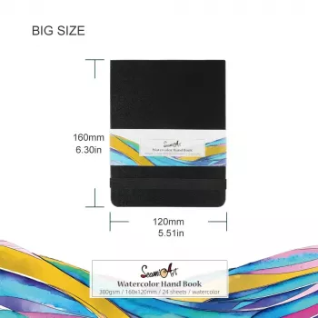 Portable PU Leather Watercolor Notebook - 300g, Coarse Grain, Wood Pulp Paper