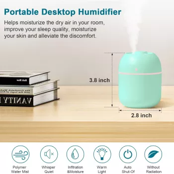 Portable USB Cool Mist Humidifier & Aroma Diffuser with Night Light – 7.4 oz