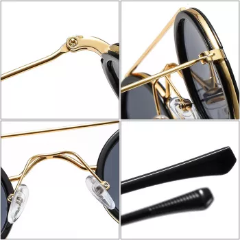 Retro Round Metal Sunglasses with Double Bridges - UV400 Protection, Candy Colors