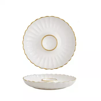 Round Ceramic Snack Plate with Dip Dish – Porcelain Dumpling & Sushi Plate