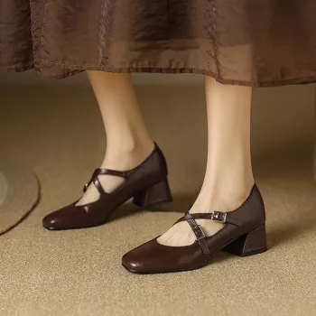 Spring Retro Square Heeled Mary Janes with Buckle Strap for Women