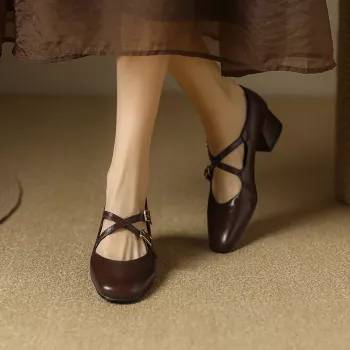 Spring Retro Square Heeled Mary Janes with Buckle Strap for Women