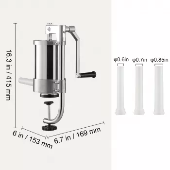 Stainless Steel Vertical Sausage Stuffer – 1.5/3L Manual Meat Filler with 3 Tubes