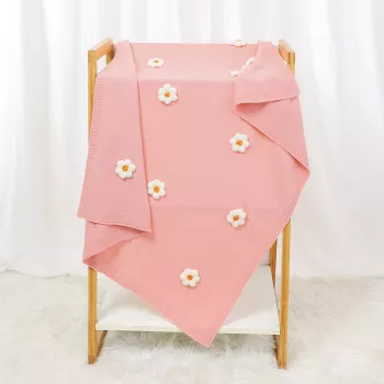 Super Soft Knit Baby Blanket with 3D Flower - 100x80CM