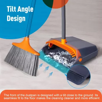 Upgrade Broom and Dustpan Set with Self-Cleaning Teeth & Extendable Handle
