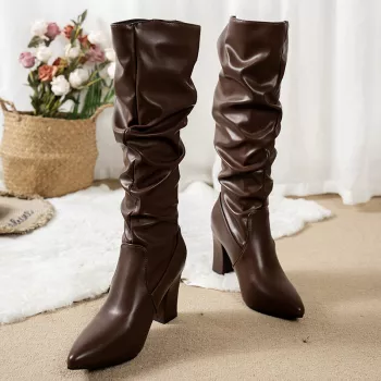 Vintage Knee High Pleated Boots for Women with Thick Heel