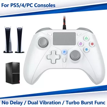 Wired Game Controller with Turbo, Dual Vibration & Programmable Buttons