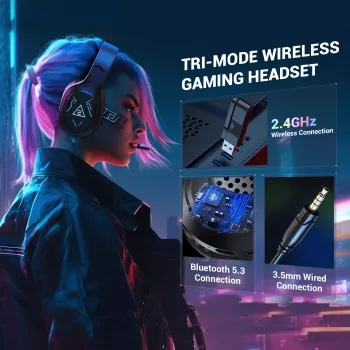 Wireless Gaming Headset with Mic, Bluetooth 5.3, 20ms Low Latency, Tri-Mode