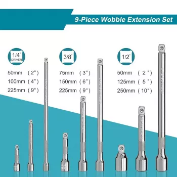 Wobble Extension Socket Set 1/4" 3/8" 1/2" Drive Ratchet Extension Kit