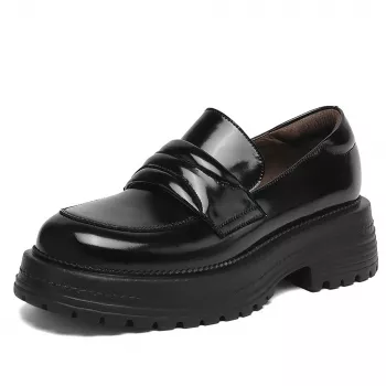 Women's Genuine Leather Lightweight Slip-On Pumps with Round Toe and Thick Sole