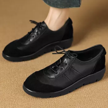 Women's Genuine Leather Patchwork Platform Sneakers with Thick Sole
