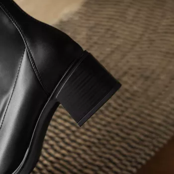 Women's Microfiber Ankle Boots with Thick Heels and Zipper Closure